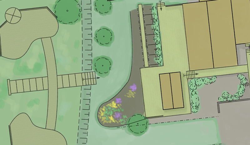 En konceptskiss innebär en övergripande ritning på karaktär och grundform av din trädgård, samt utplacering av befintliga och framtida funktioner, och indelningen av trädgårdens rum.